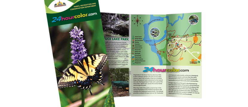 Full color brochures are in the forefront of any marketing or information campaign. Folded so they are portable but when unfolded holds a mass amount of information.